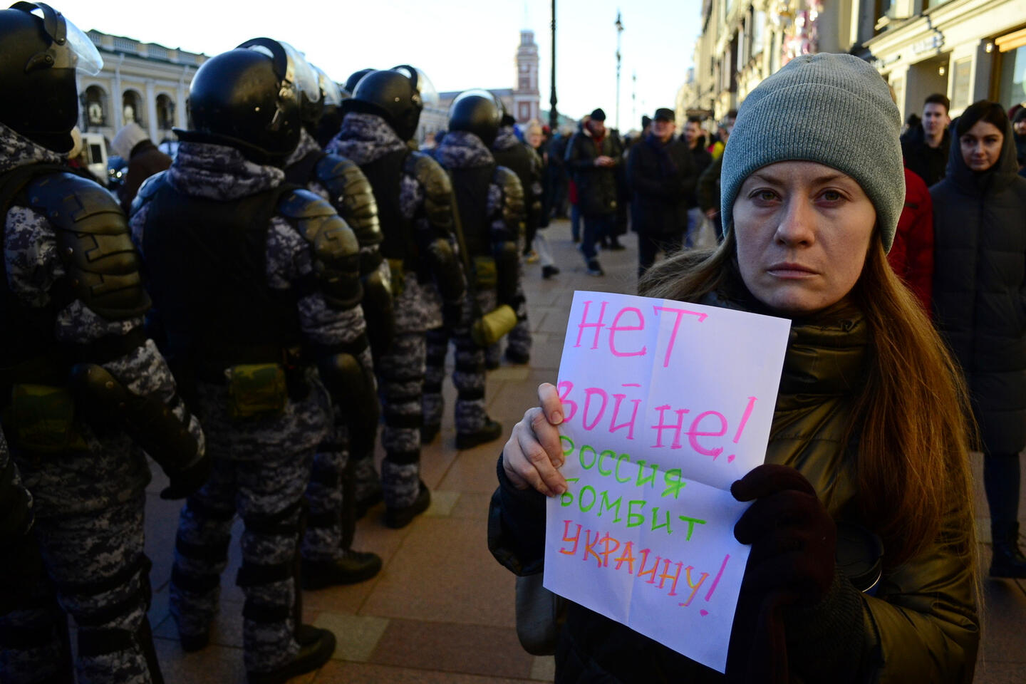 Russian policemen in St. Petersburg during a rally against the war in Ukraine